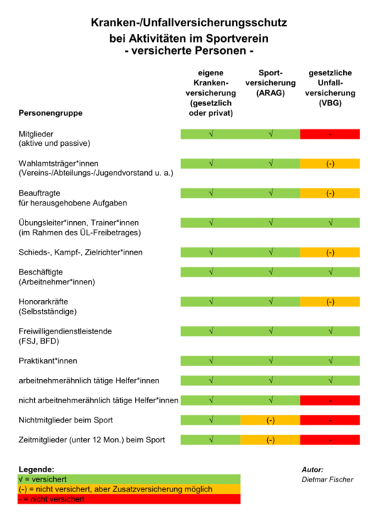Welche Versicherung bietet bei einem Unfall im Sportverein für welche Personengruppen Versicherungsschutz und entsprechende Leistungen?